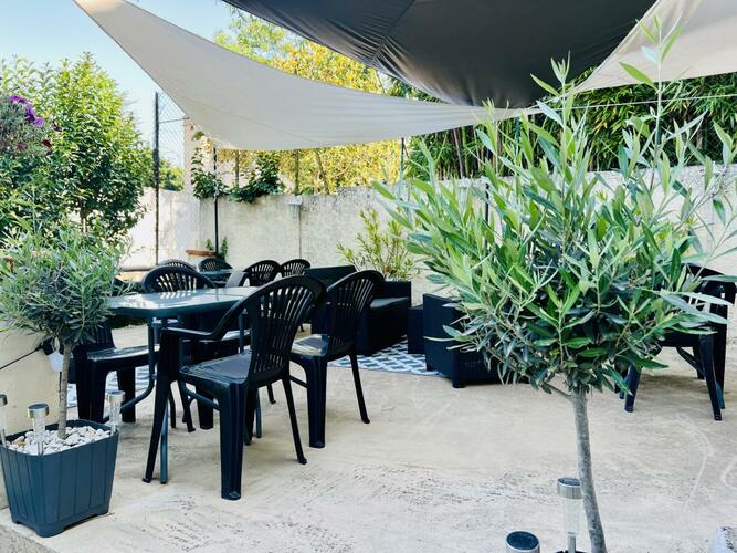 Au cœur du village animé, le Grand Hôtel ** dévoile un véritable havre de paix : un grand jardin arboré, fleuri et spacieux, où l’on profite d’une atmosphère presque zen. À l’ombre des arbres ou sous les voiles d’ombrage, la terrasse offre un cadre idéal pour se détendre, lire ou savourer le petit-déjeuner aux beaux jours. Un espace privilégié, rare en centre-ville, qui invite tout simplement à ralentir et à apprécier la douceur provençale.